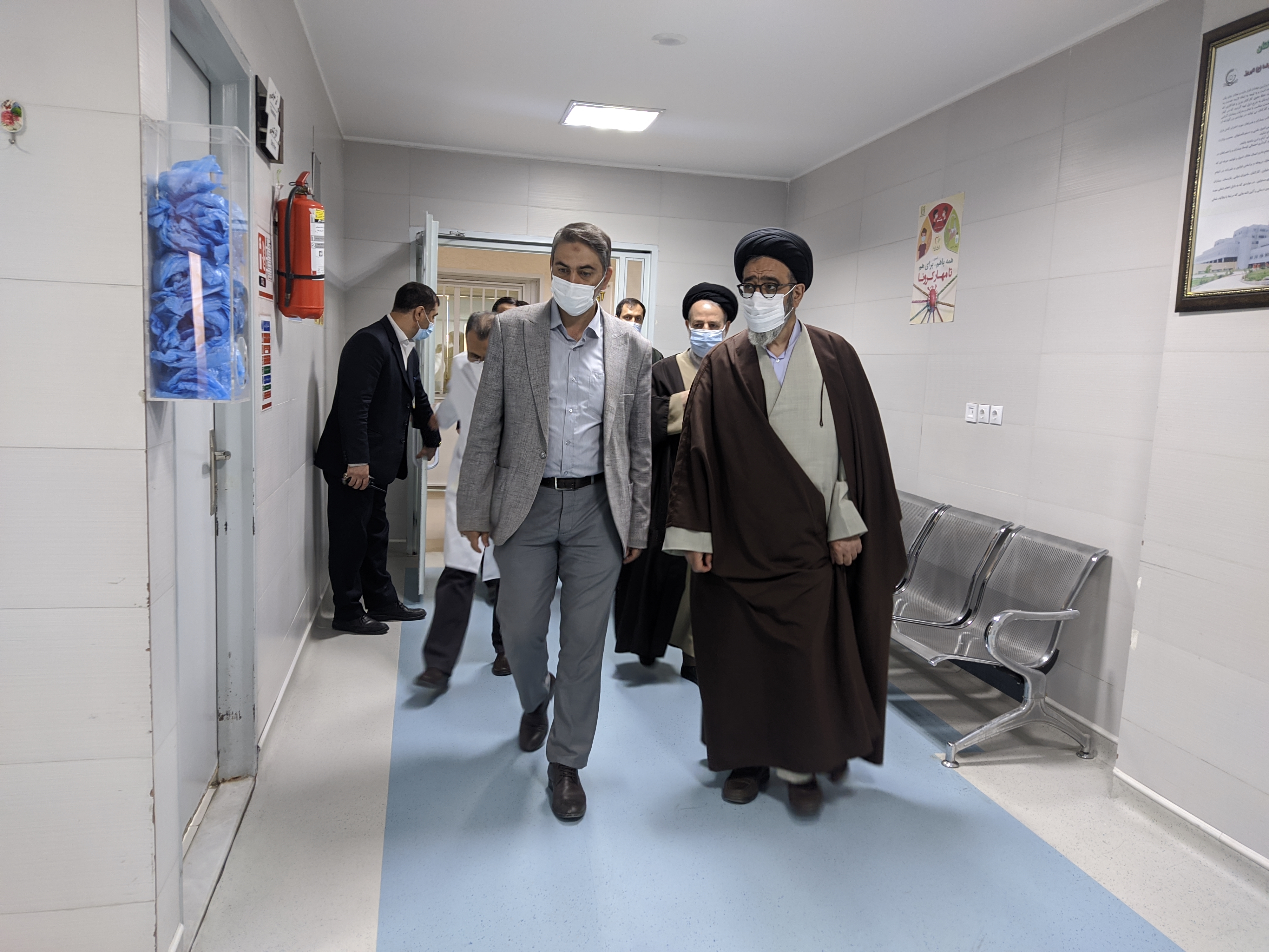 حجت الاسلام والمسلمین سید محمدعلی آل هاشم نماینده ولی فقیه در استان در حاشیه عیادت از آیت الله حاج شیخ جواد حاجی زاده در مرکز آموزشی، درمانی و تحقیقاتی امام رضا (ع) از بیماران بخش ICU5 این بیمارستان دیدار و برای سلامتی بیماران آرزوی سلامتی کرد .