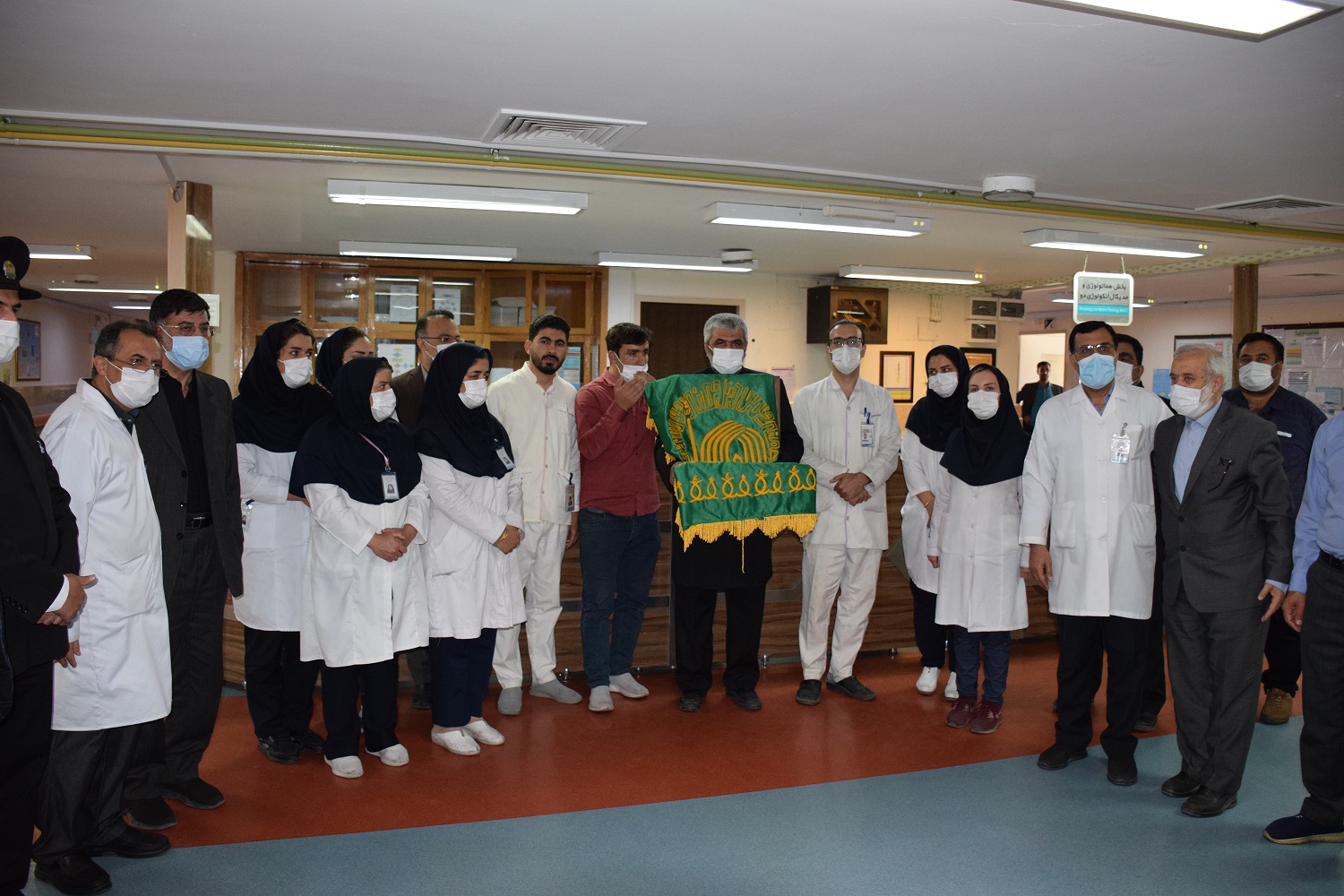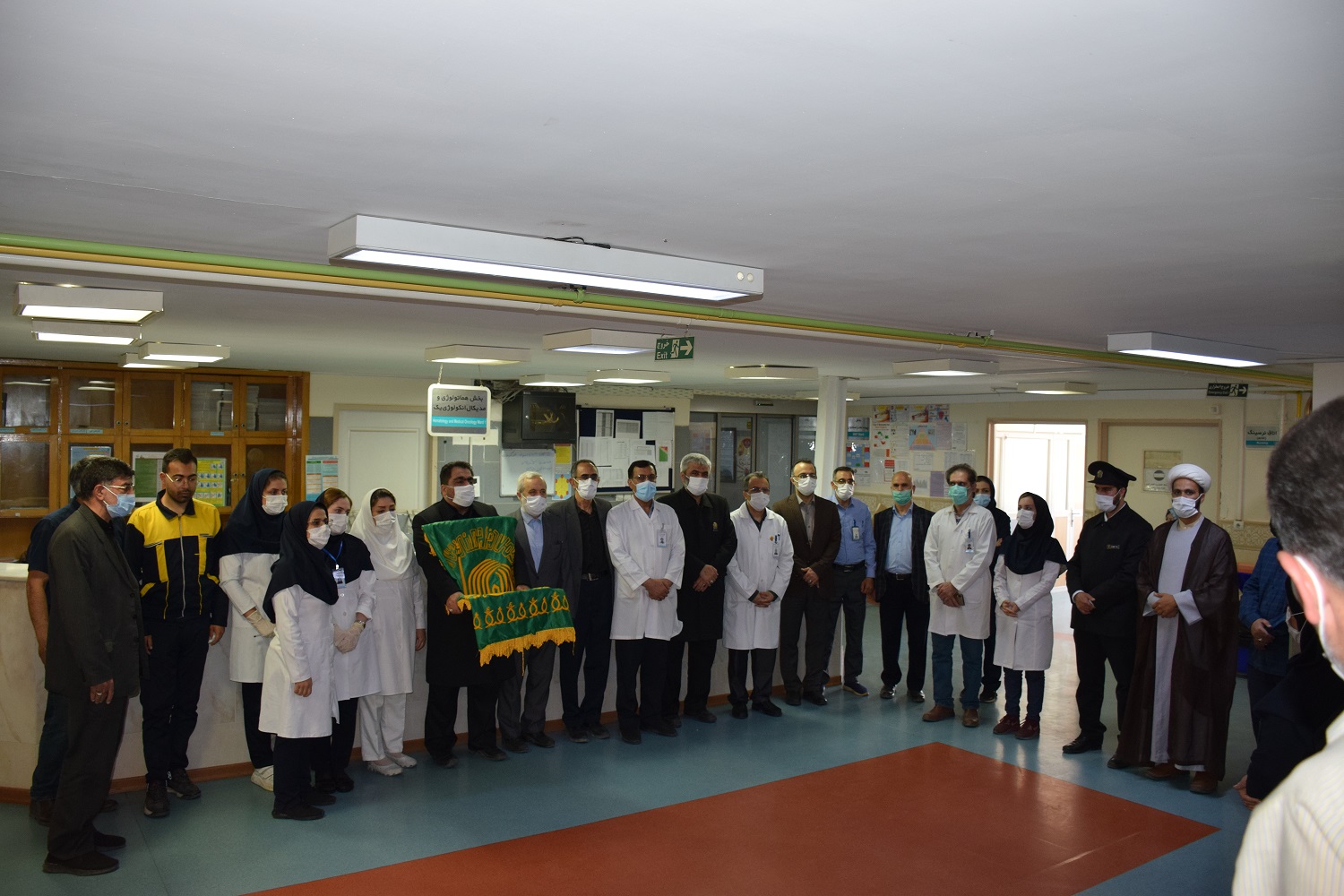 اهداء پرچم متبرک بارگاه رضوی و تکریم کادر درمان توسط آستان قدس رضوی