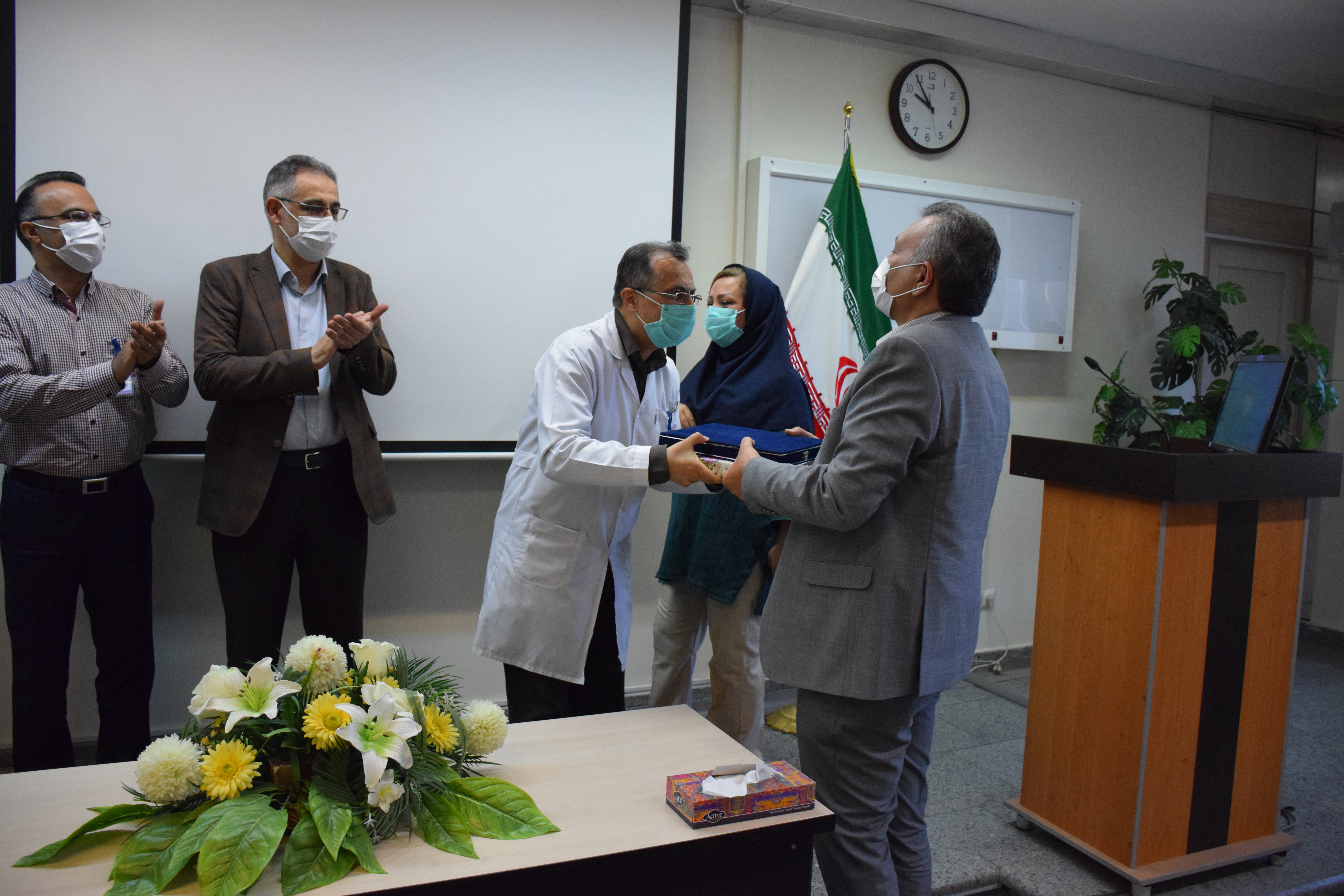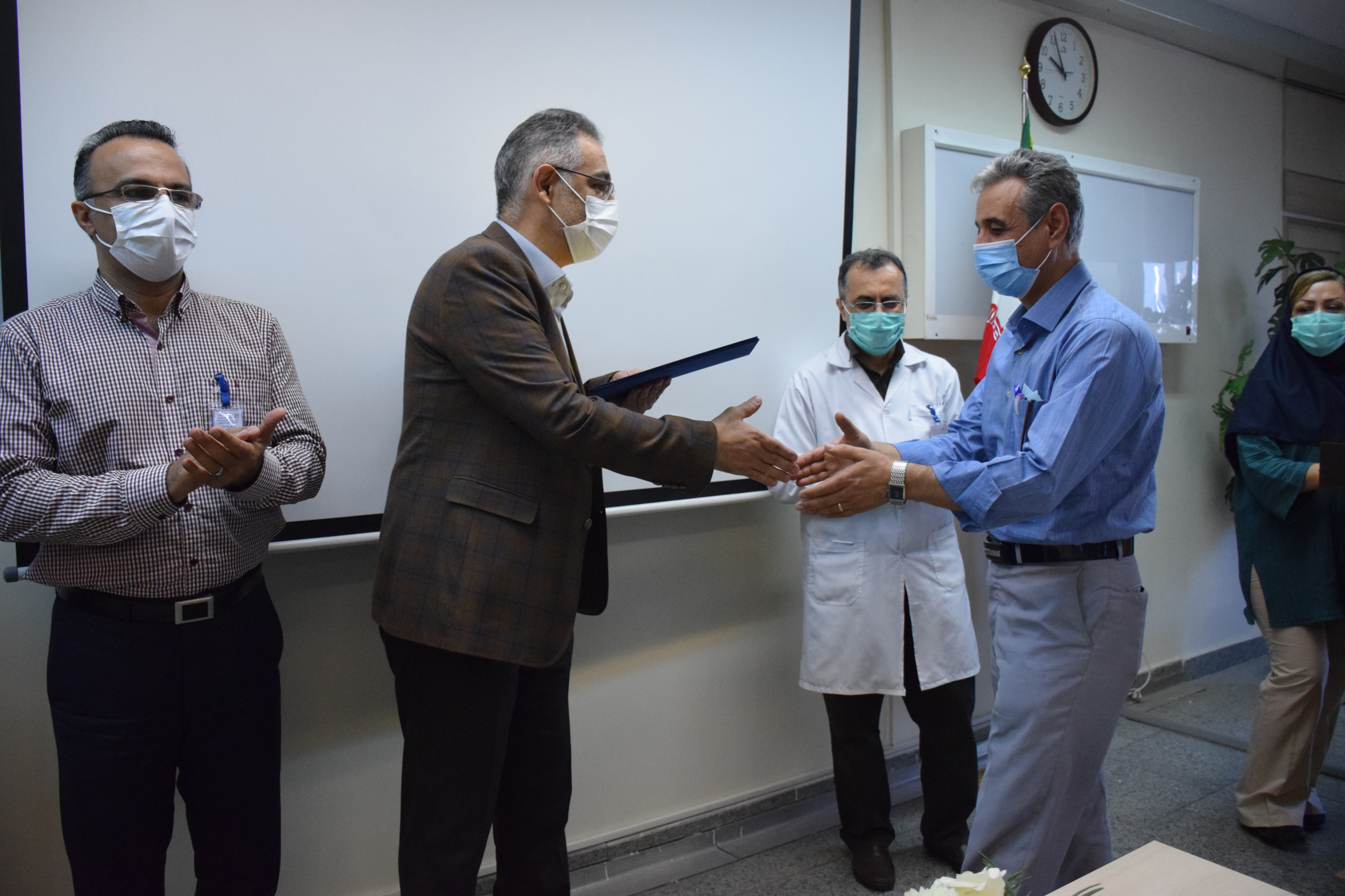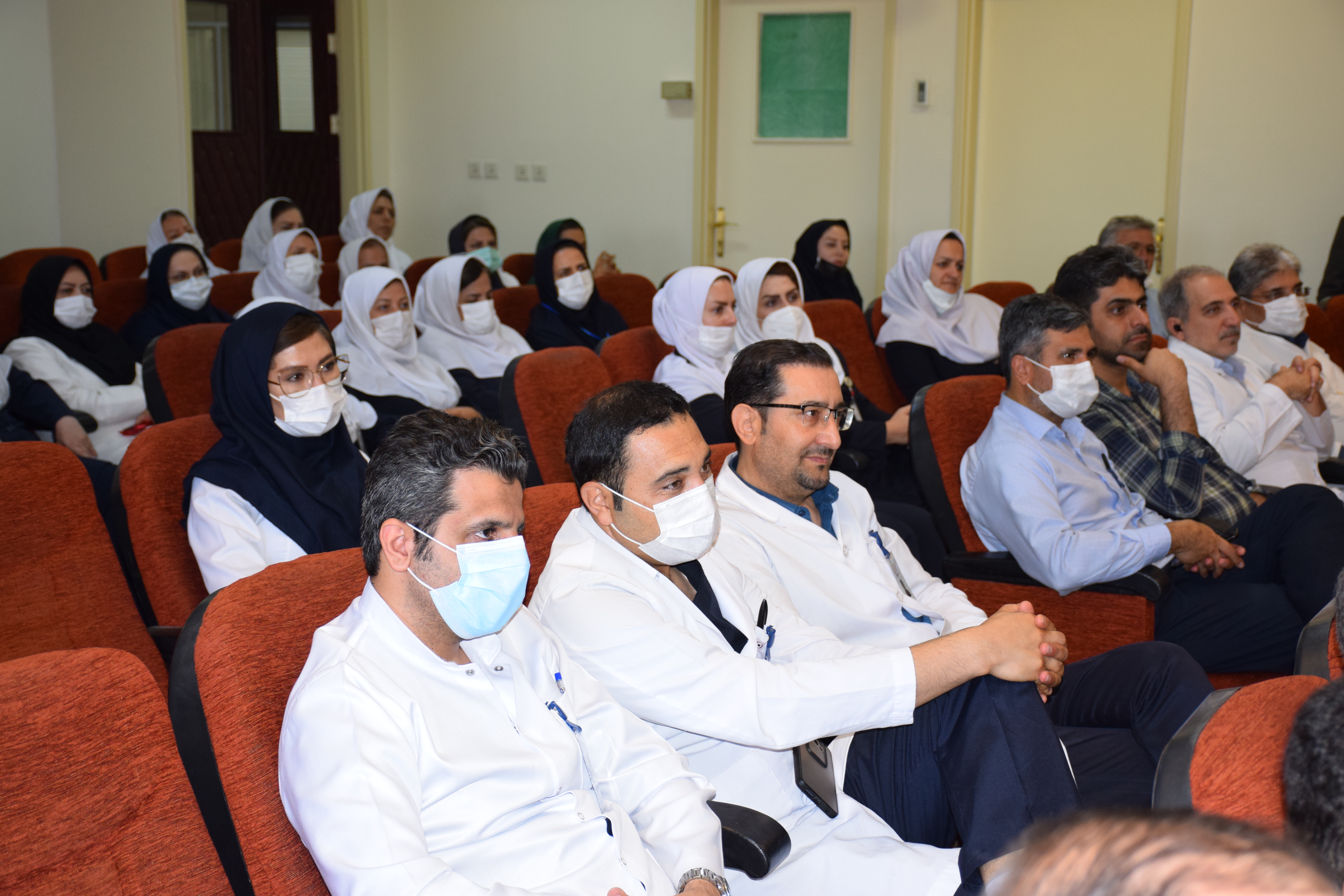 دکتر بهشتی روی از عملکرد ممتاز و پیشقدم بیمارستان در برنامه های وزارتی کرونا، فعال کردن بموقع کمیته مرگ و میر، تهیه لوازم پوششی و دارویی و همراهی نیروهای درگیر از جمله خدماتی، کمکی،پرستار و پزشک را نام برد و از کارکنان بخاطر این همراهی ایثارگرانه تشکرکرد.