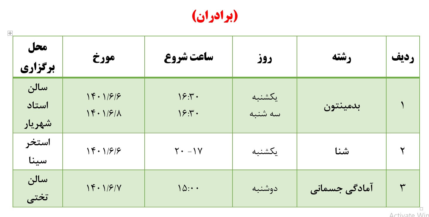 علاقمندان می توانند جهت ثبت نام و شرکت در مسابقات از مورخ 1401/5/20 لغایت 1401/6/1 به سایت مدیریت امورپشتیبانی و رفاهی دانشگاه علوم پزشکی تبریز مراجعه نمایند.