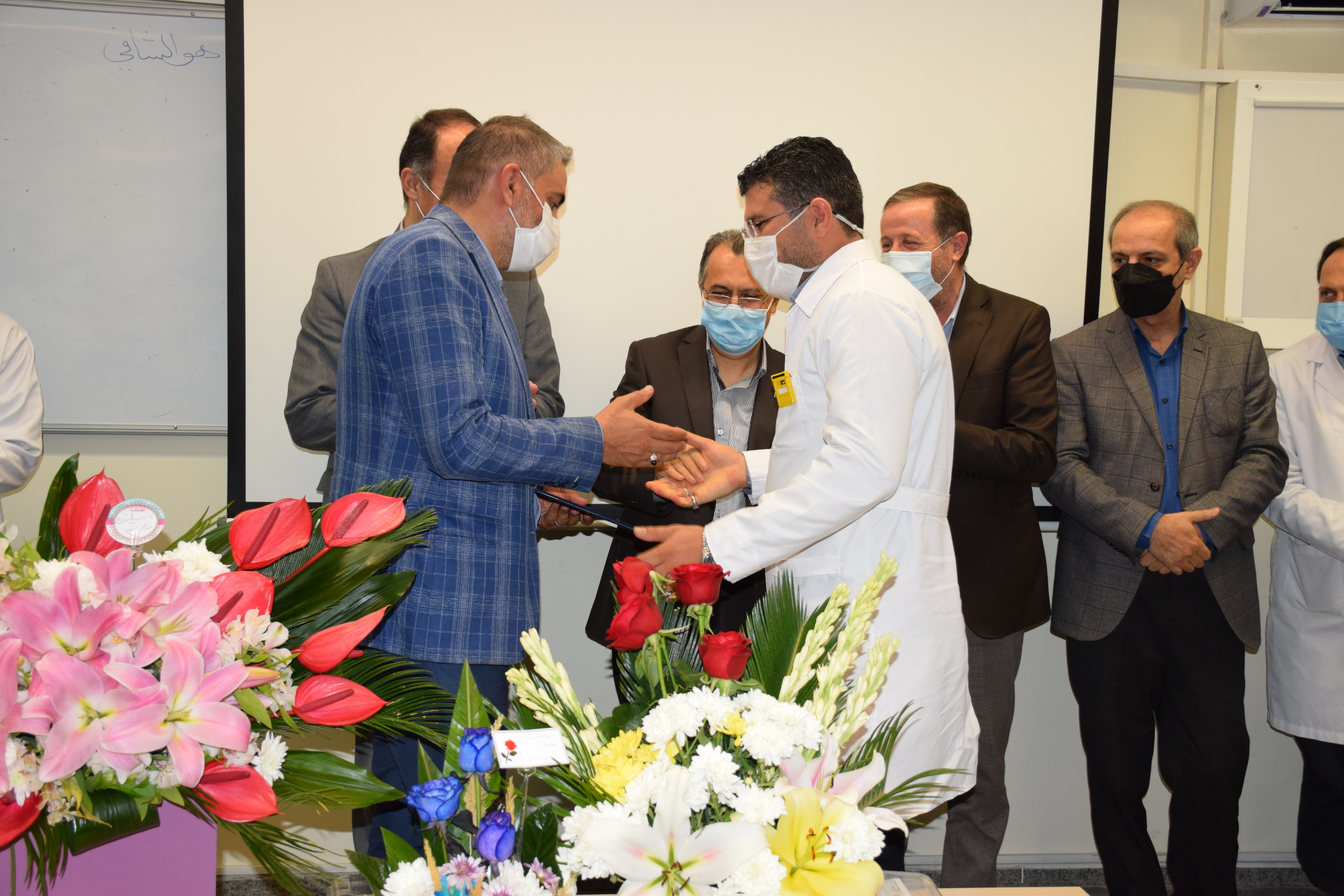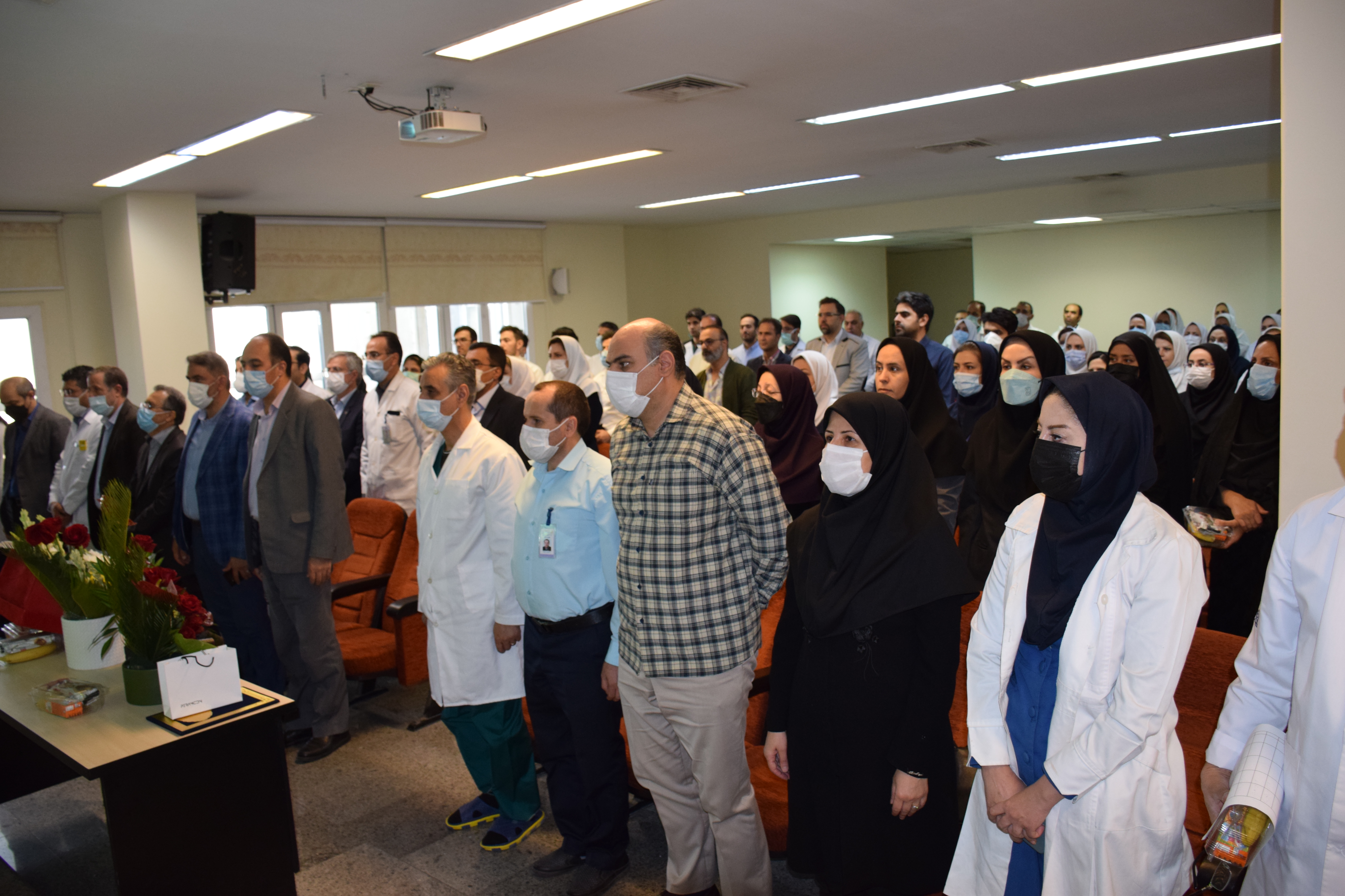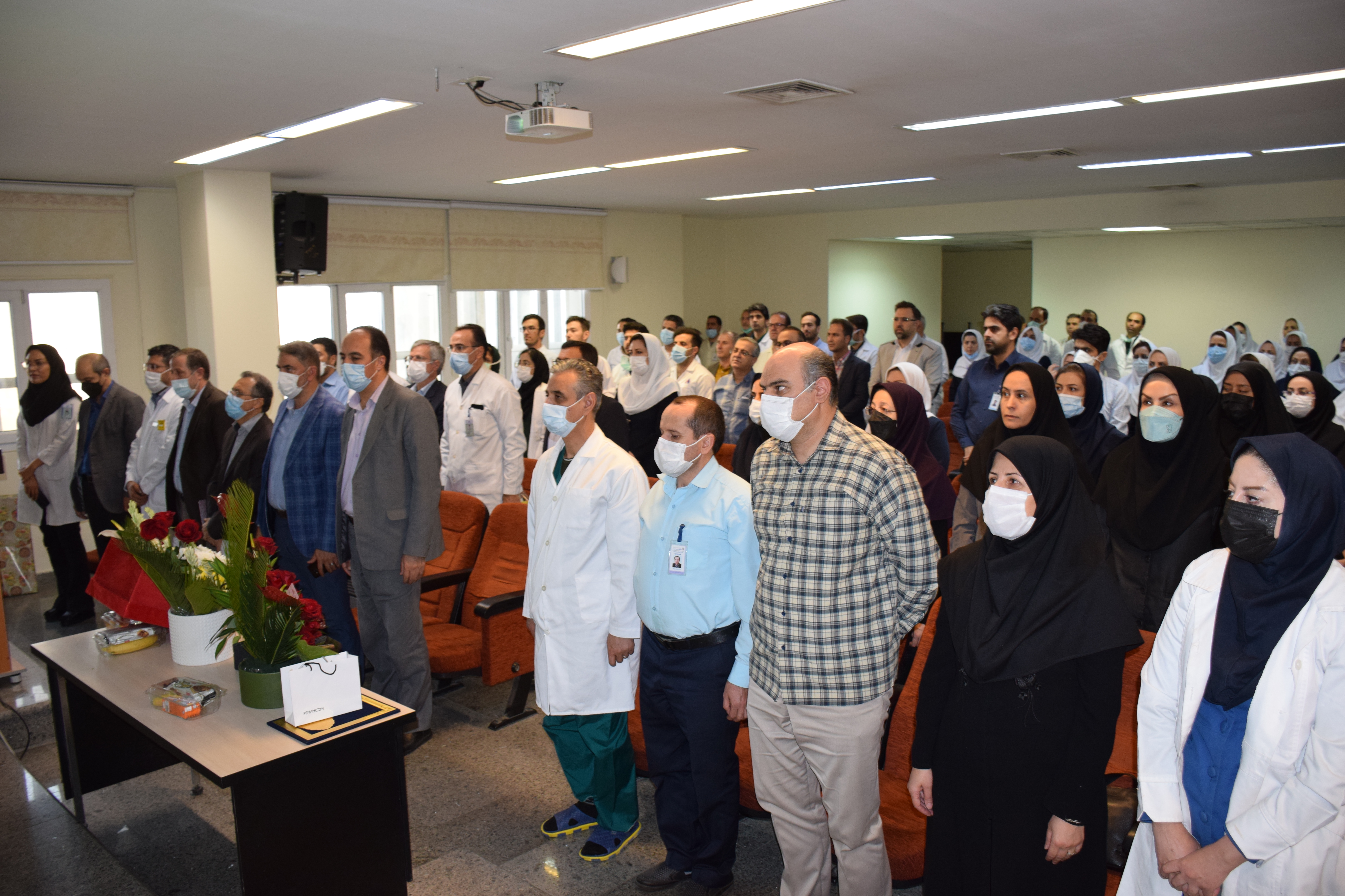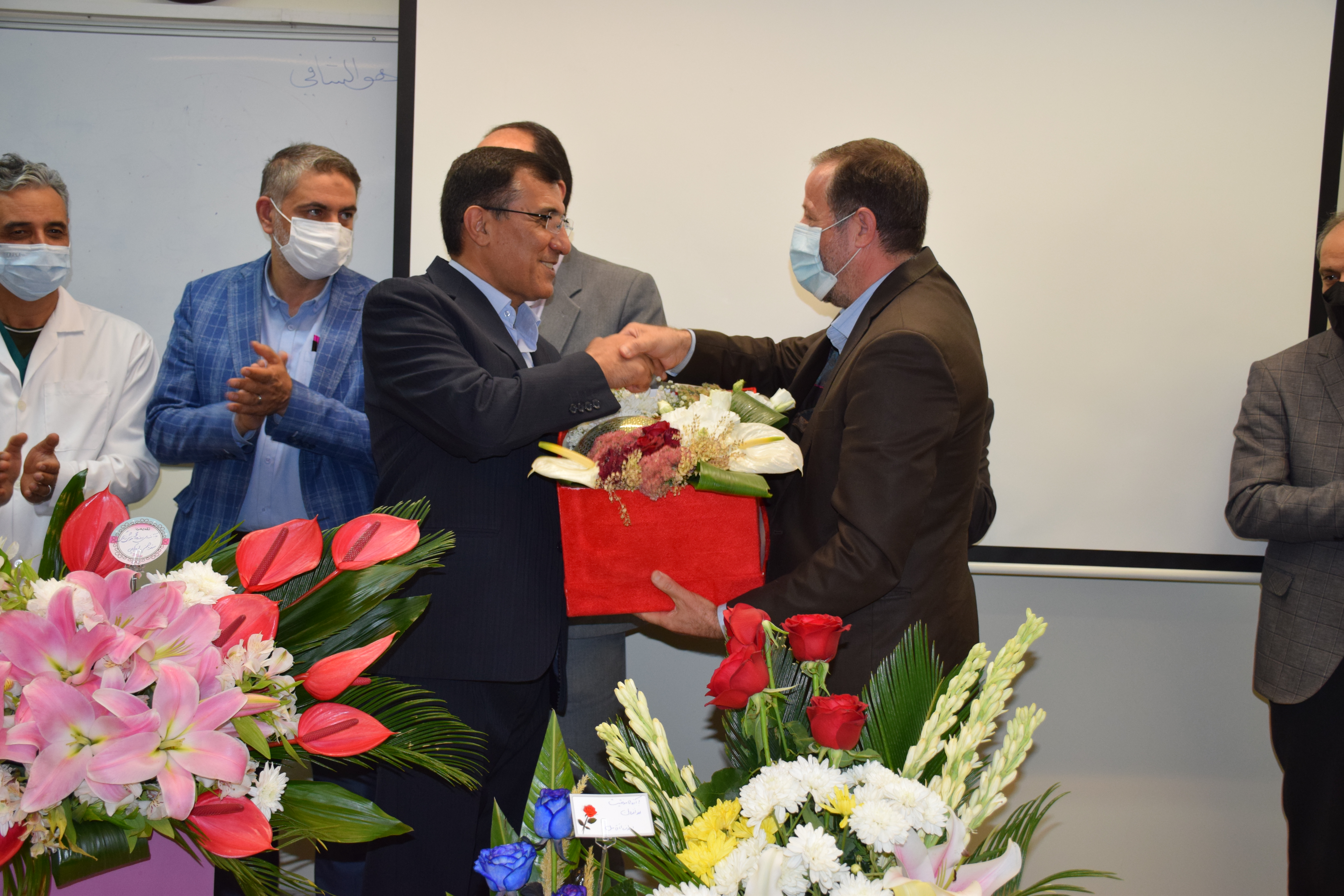 دکتر شیرزاد یاد وخاطره شهدای دفاع مقدس، مدافع حرم و مدافغ سلامت را گرامی داشتو با بیان گزارشی مختصر از عملکردشان و چند خاطره از فداکاری های همکاران گفت: در دوران کرونا که حتی گاهی مردم از عزیزانشان به دلیل ابتلا به کووید 19 دوری می جستند همکاران ما با جان فشانی شان موجب التیام دردها و بهبود بیماران شدند. و از همه همکاران و همراهان دوران خدمتشان تشکر کردند.