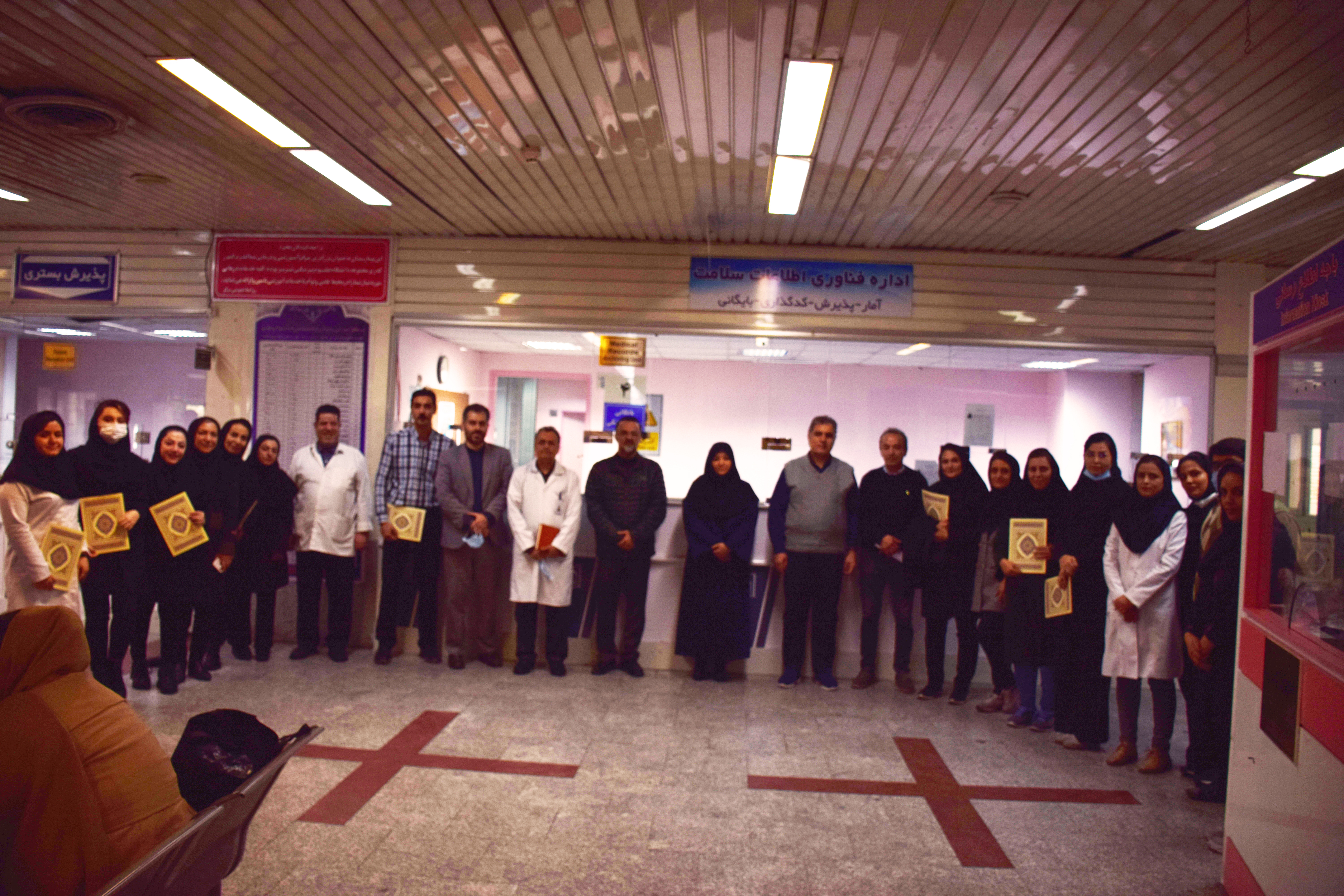 در این مراسم با اهدای لوح تقدیر از خدمات و زحمات پرسنل واحد آمار و مدارک پزشکی بیمارستان قدردانی شد.