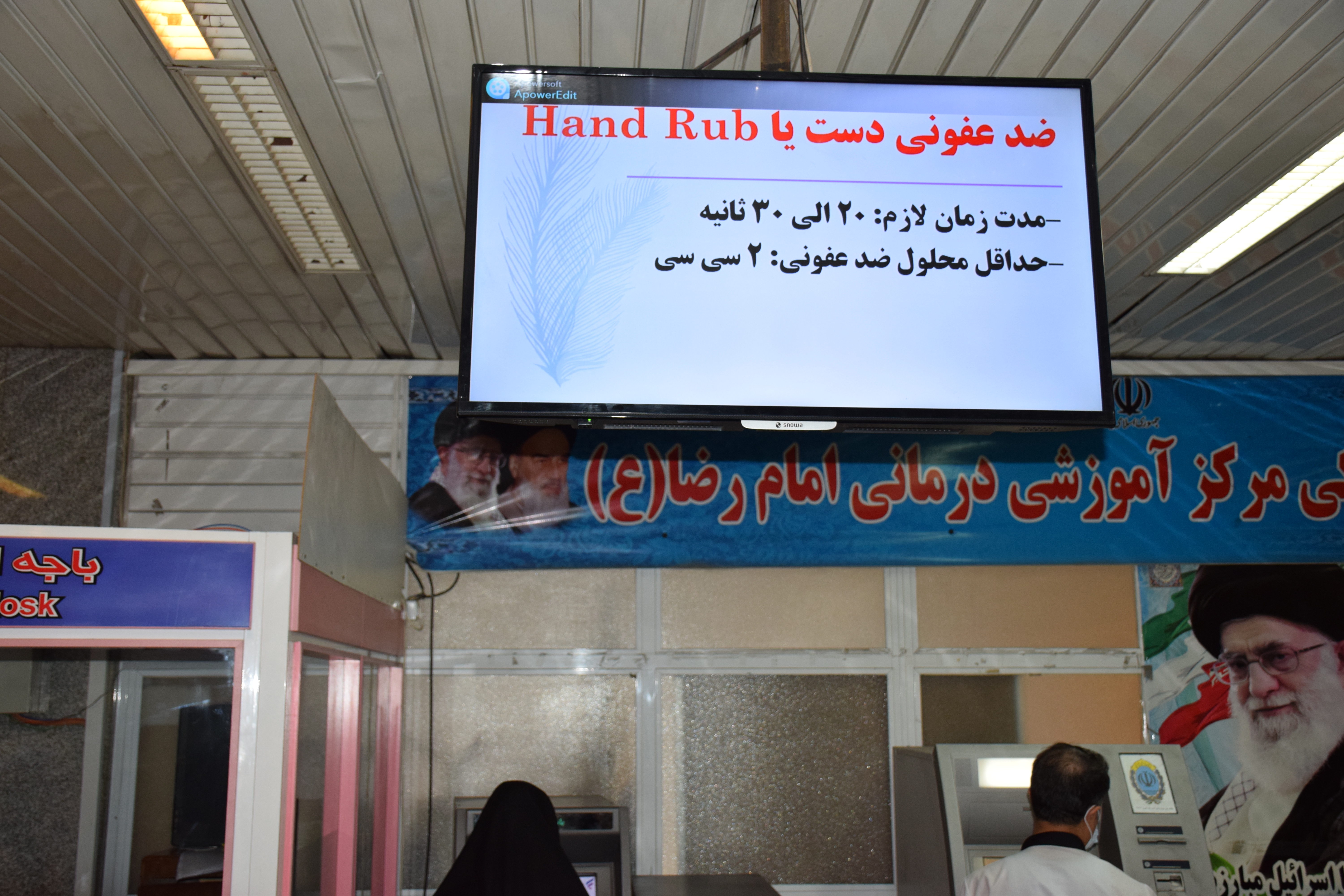 - پخش فیلم های آموزشی از مانیتورهای مرکز در مورد نحوه صحیح شستن دست
