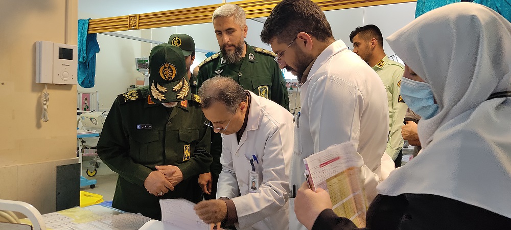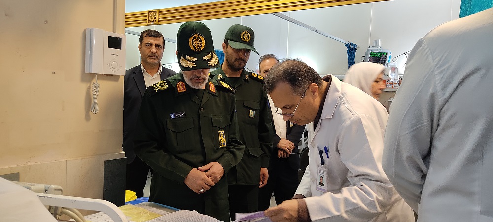 عیادت و پیگیری درمان بسیجی مصدوم آقای امیر حسین پور توسط فرماندهی سپاه عاشورا سرتیپ دوم پاسدار اضغر عباسقلیزاده