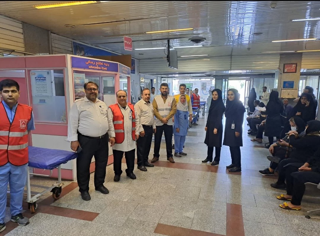 معروفی اظهار داشت: مانور میدانی آتش نشانی در تاریخ 17تیرماه در بخش جراحی فک وصورت با موفقیت انجام شد که افراد پس از شنیدن کد 125 آتش نشانی در فاصله زمانی استاندارد با کپسول آتش نشانی در محل حاضر شدند. مانور میدانی افزایش ظرفیت در مواقع بحران نیز در تاریخ 24 تیر ماه نزدیک به 350 تخت در 7 بخش و4 سالن بیمارستان با حضور مترون، سوپروایزر کشیک وپرستاران وکمک بهیاران وکادر خدمات وعوامل محترم حراست با موفقیت انجام شد .