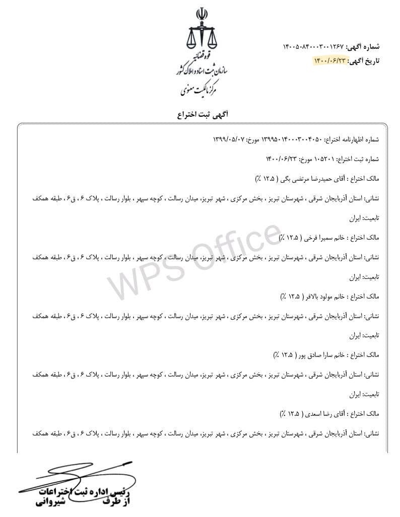اختراع ثبت شده ی جناب آقای دکتر بیگی